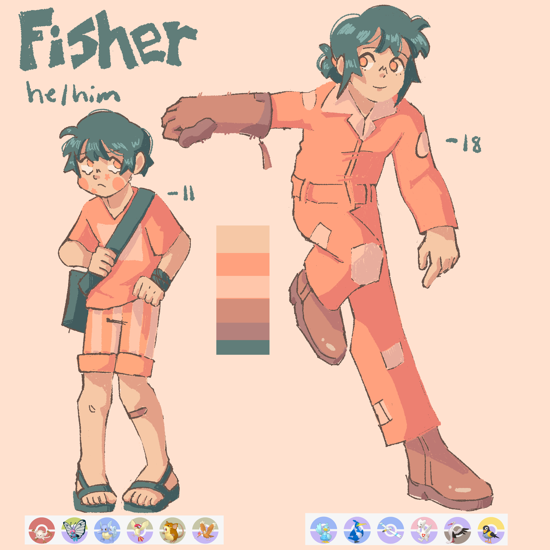 a crybaby with a complex, Fisher Beckett is a hater of everything fishy and wet. coming from a family of fishermen in the Johto region, Fisher finds himself on an involuntary vacation to Kanto where